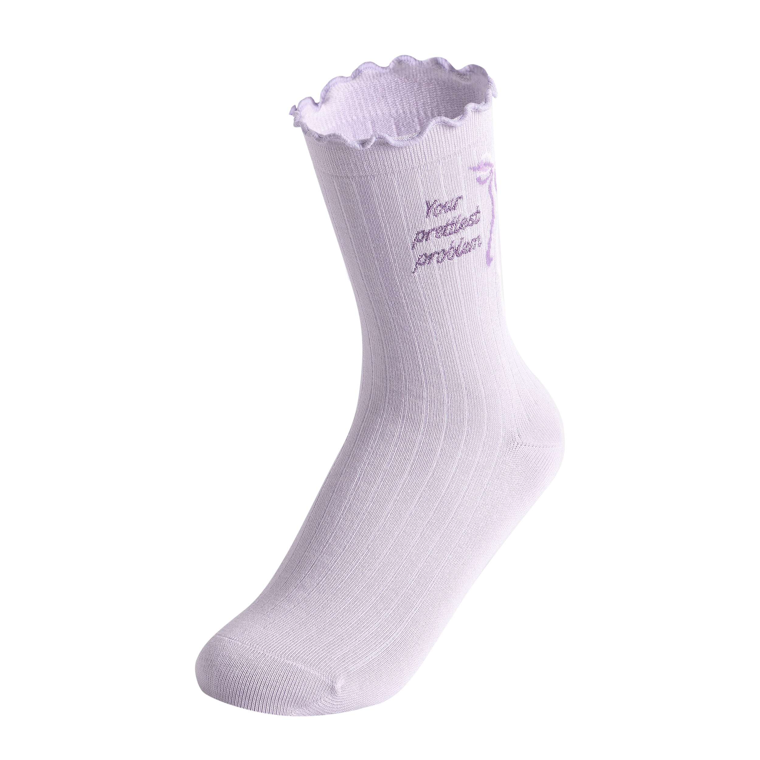 Sweet with a hint of mischief. These crew socks, stitched with Your Prettiest Problem, pair airy cotton and ruffle trim with just the right touch of charm.