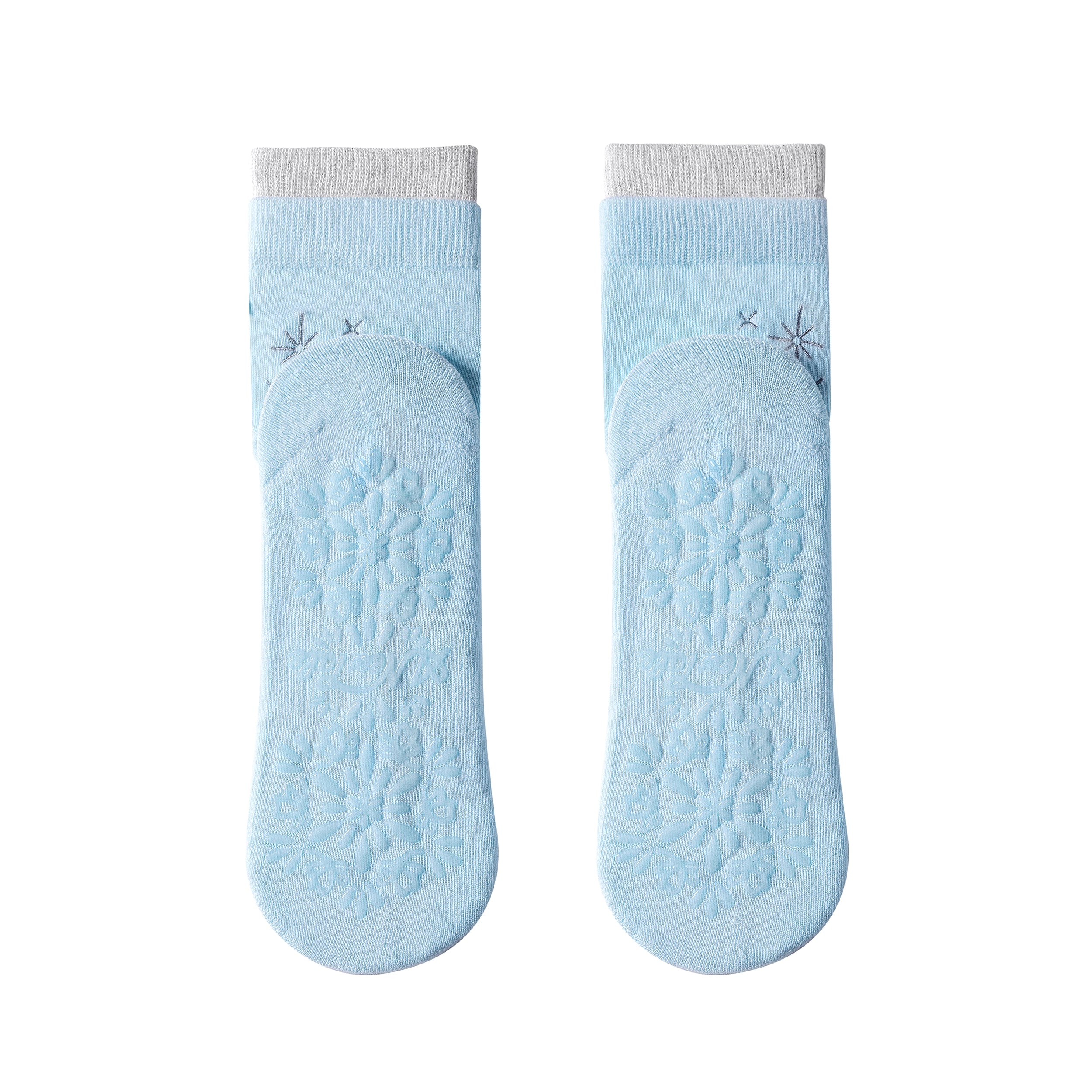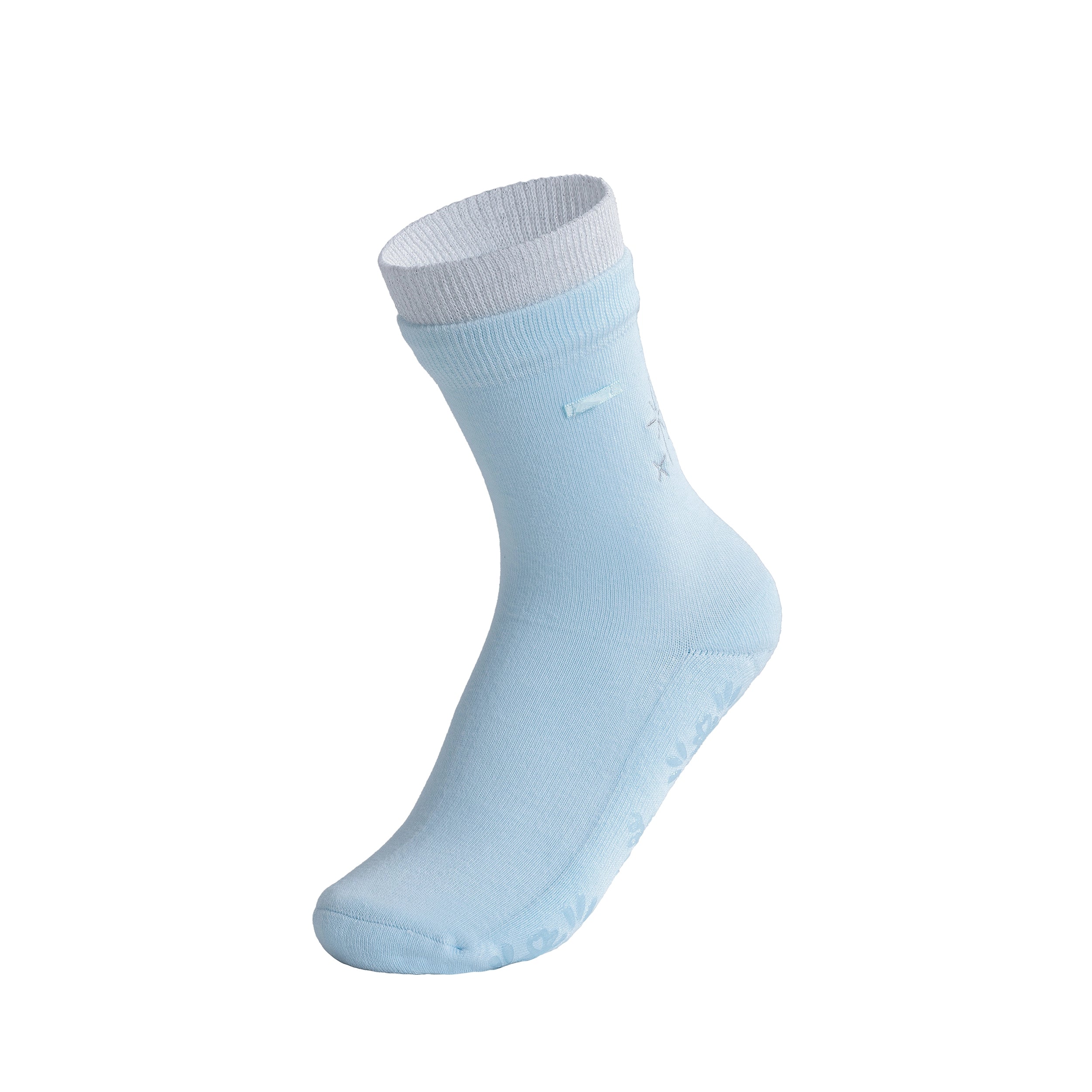 Brighten your flow with these sky blue Pilates socks, finished with a silver cuff and a satin loop for charms that’ll let your personality shine with every move.